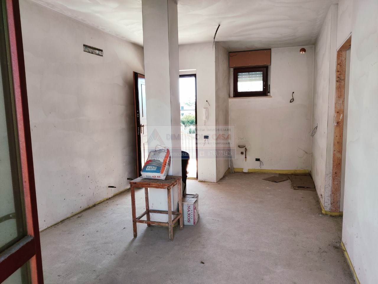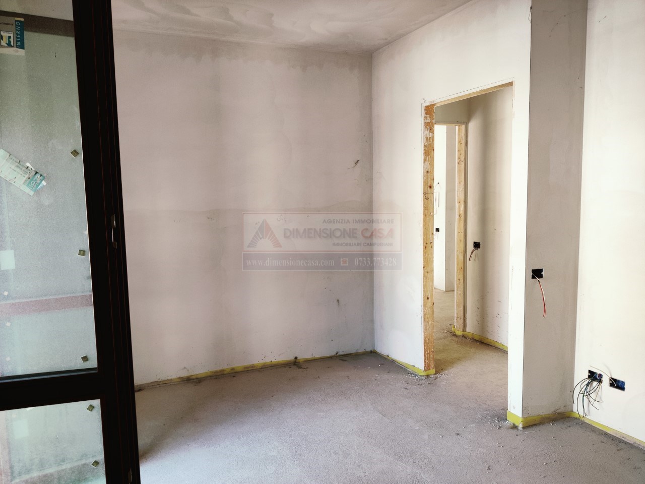 Morrovalle. Trodica vicino al centro gestiamo la vendita di un appartamento al piano primo con posto auto privato. Palazzina nuova costruita nel 2008 in cemento armato e rivestita a mattoncini. La palazzina e' composta da piano terra , piano primo e secondo. All'interno area privata dove hanno creato dei posti auto privati. Predisposto ascensore , attualmente da riattivare. La palazzina e' ultimata per tutte le parti condominiali. L'appartamento in questione e' allo stato grezzo avanzato, impianti gia predisposti, massetti fatti, intonaci fatti e infissi esterni montati. E' composto da soggiorno/cucina, camera, studio, balcone che si affaccia sulla strada, balcone con affaccio sul retro e posto auto. Per chi volesse l'appartamento finito e' possibile scegliere i materiali di rifinitura e colore pareti e porte con accordi con la Proprietà. La foto con le finiture sono create con AI. Per Informazioni: Luca Campugiani 3358354646